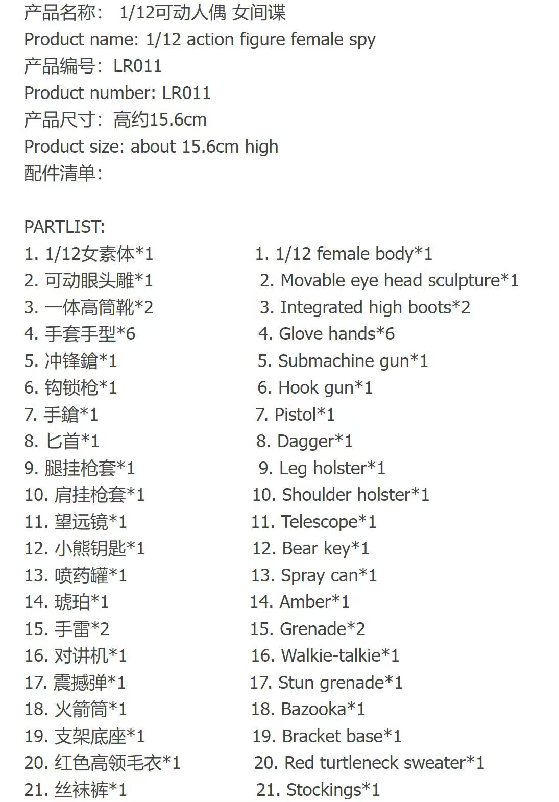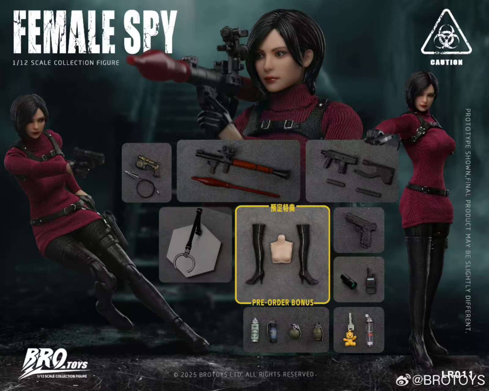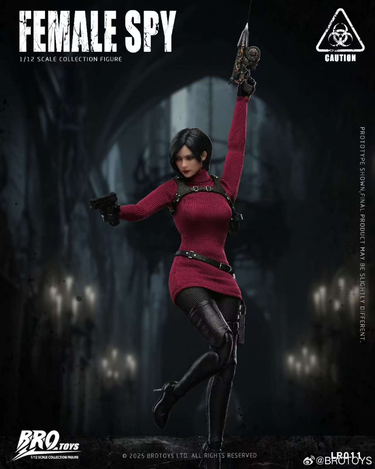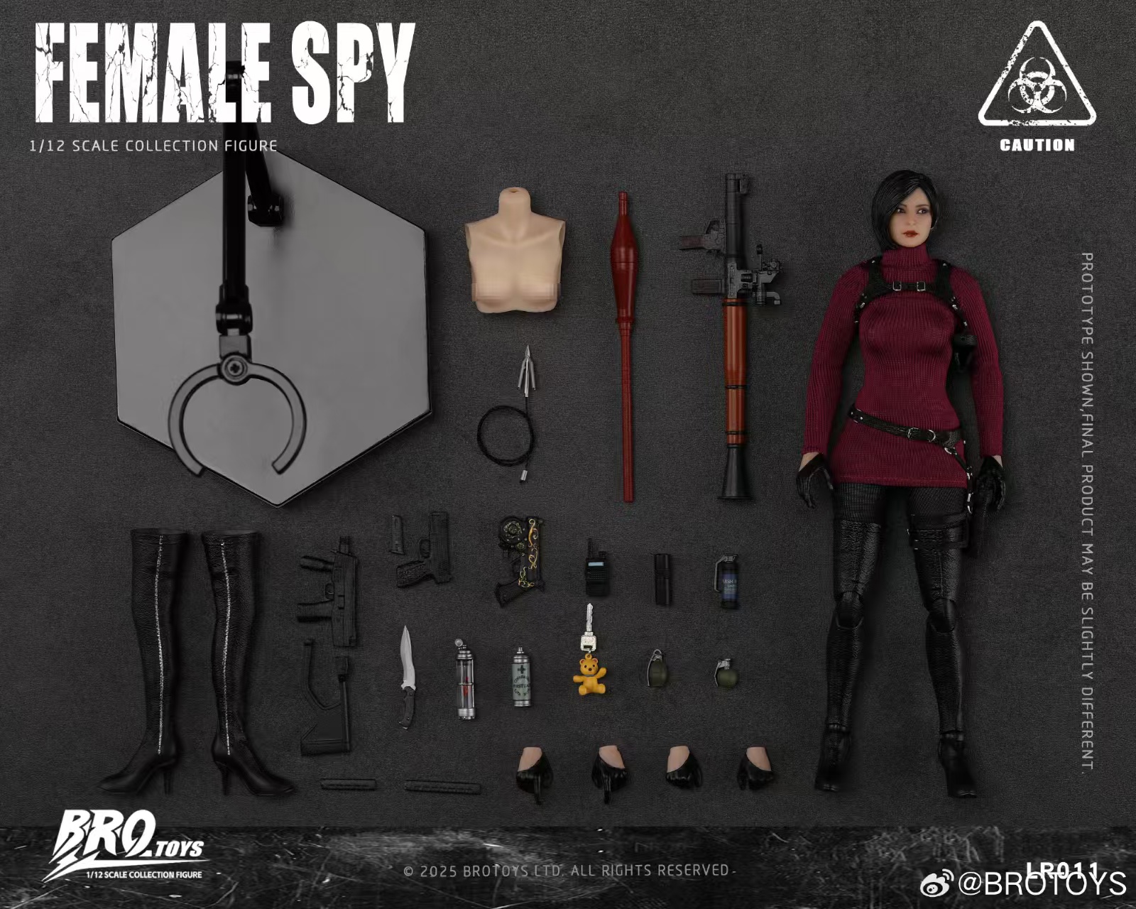 – This BROTOYS Ada Wong figure showcases a 1/12 female body with a movable eye head sculpture, accompanied by various gear like submachine guns, pistols, and grenades. It includes intricate details such as high boots, glove hands, leg and shoulder holsters, enhancing realism. Accessories like the bear key, spray can, and amber add to her unique charm.