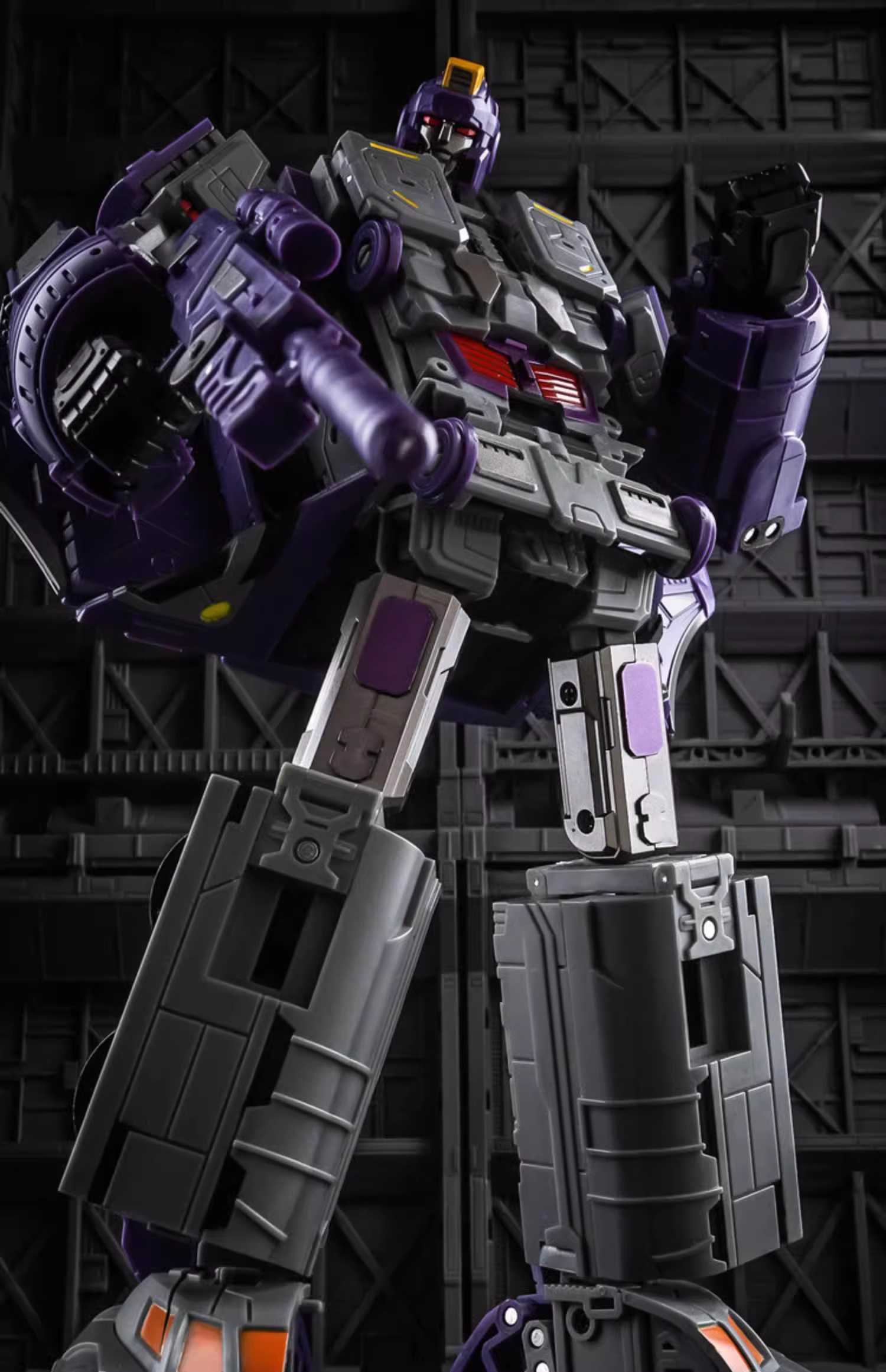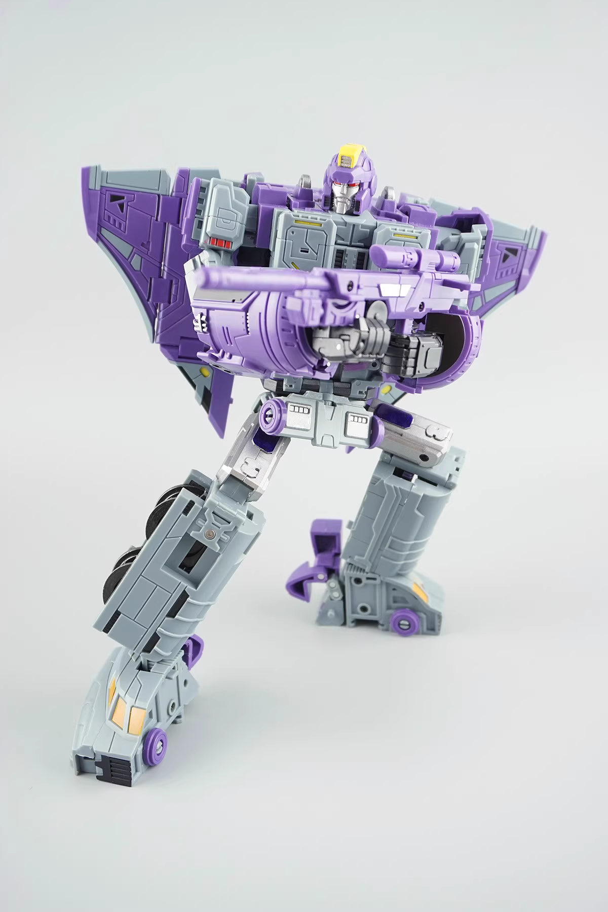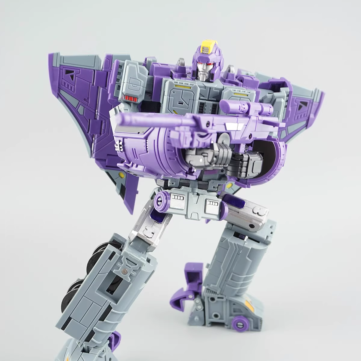DX9 D05 Chigurh Astrotrain is an awe-inspiring triple-changer that showcases the pinnacle of Transformers engineering with its versatile forms. Crafted from durable ABS material, this impressive figure stands 24cm (9.45″) tall in robot mode, commanding attention with its intricate design and striking presence. In train mode, it measures approximately 18cm (7.08″) tall, seamlessly blending functionality and aesthetics as it transitions smoothly between modes. Its space shuttle form adds an extra layer of excitement, offering fans a thrilling glimpse into intergalactic adventures.