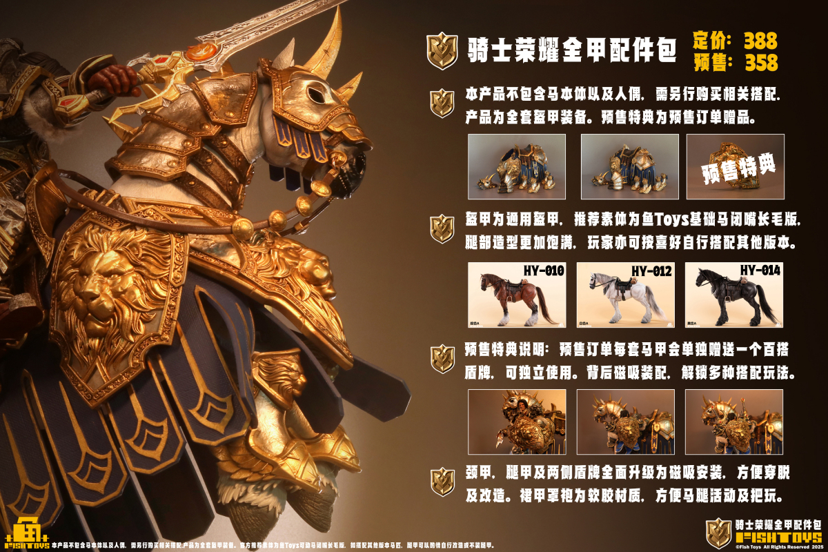 – Recommended to match with Fish Toys basic horse HY010 HY012 HY014, the hairy legs wear armor leg shape more full, other styles can also wear armor.