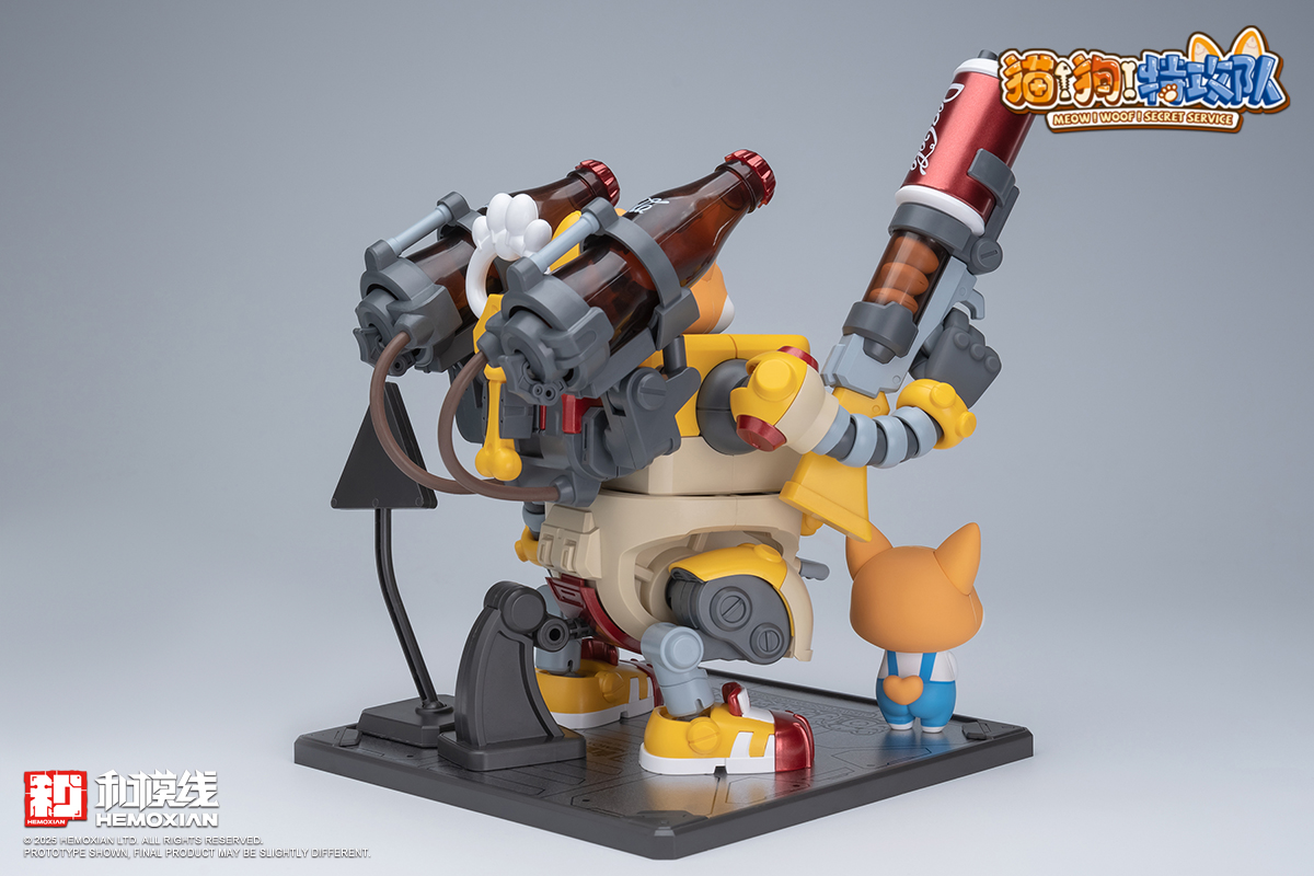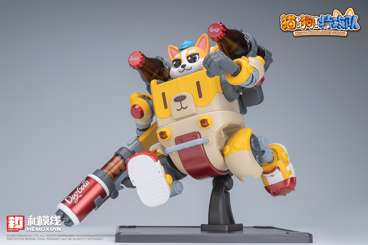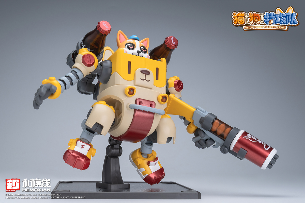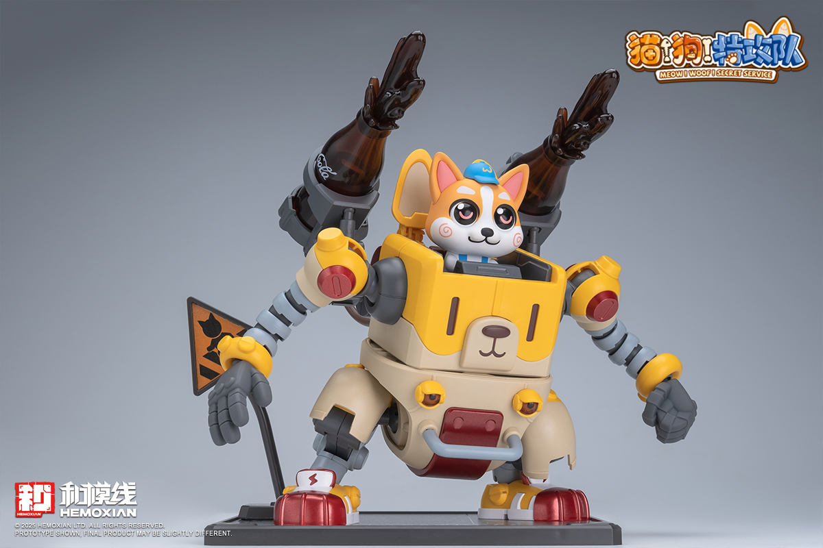 – The fusion of adorable pets and mecha features each box containing one pre-painted standing and one seated pilot figure of Wangwang. Two sets of movable eyeballs paired with different eye sockets allow for multiple expression displays. Magnetic structures embedded in Wangwang’s head, feet, mecha soles, and stands enable diverse scenarios and playstyles. The mechs’ weapons and designs are crafted based on each pup’s preferences and habits—like Kero’s favorite “Kero-Dog,” or Haerqi’s beloved home-demolition trio.
