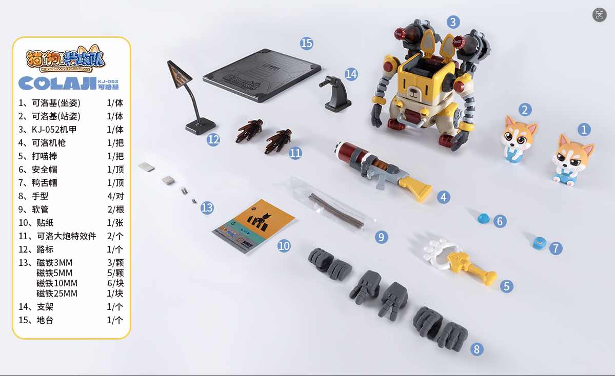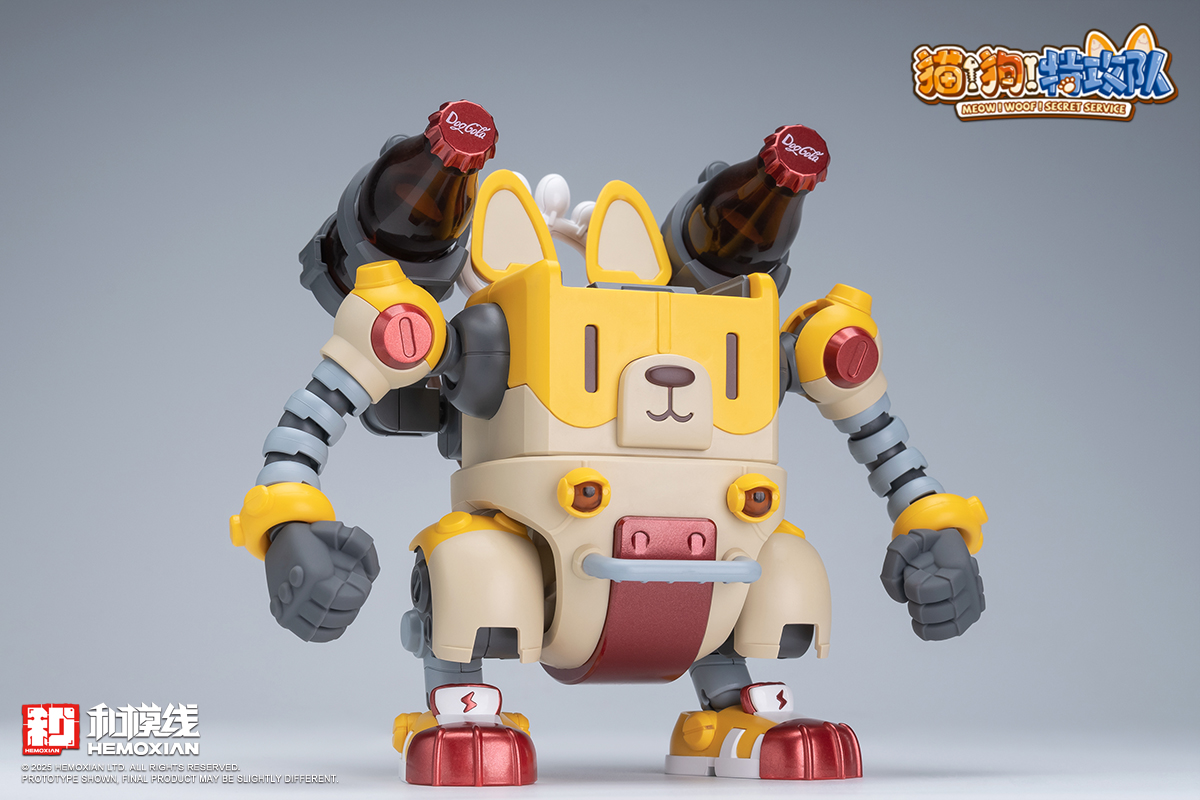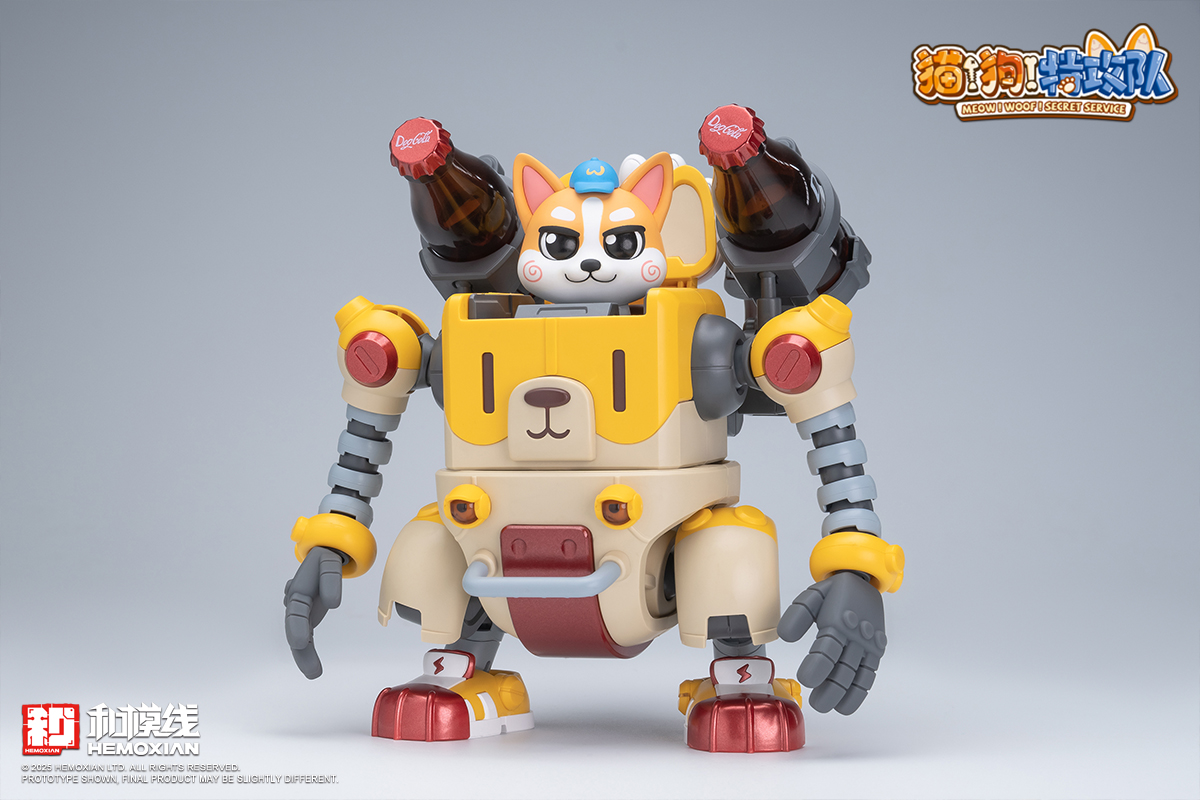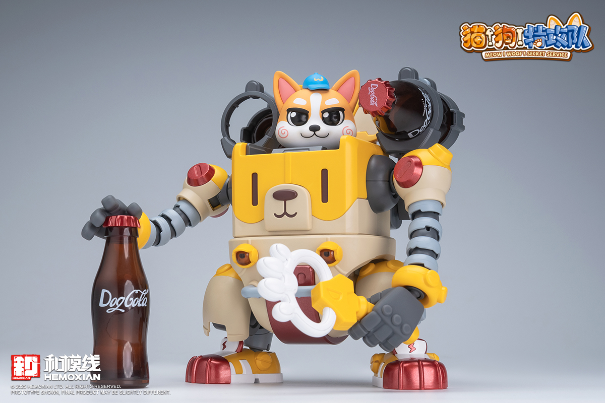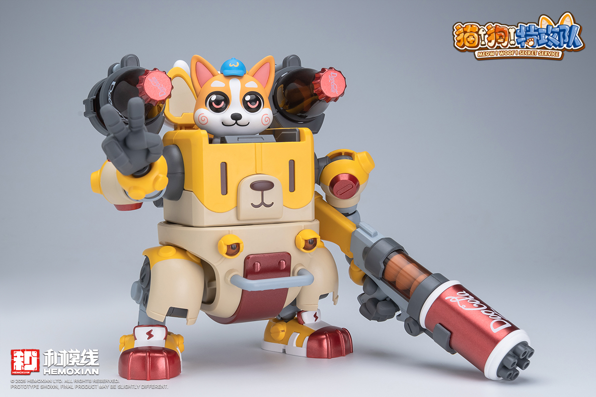 – The fusion of adorable pets and mecha features each box containing one pre-painted standing and one seated pilot figure of Wangwang. Two sets of movable eyeballs paired with different eye sockets allow for multiple expression displays. Magnetic structures embedded in Wangwang’s head, feet, mecha soles, and stands enable diverse scenarios and playstyles. The mechs’ weapons and designs are crafted based on each pup’s preferences and habits—like Kero’s favorite “Kero-Dog,” or Haerqi’s beloved home-demolition trio.