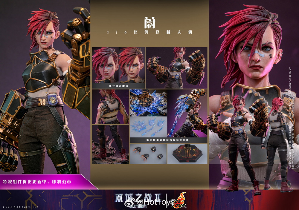 – The figure uses a specially made body that stands approximately 28cm tall and features 28 points of articulation, utilizing silicone seamless arms to hide the articulated joints and naturally showcasing Vi’s toned muscle lines.