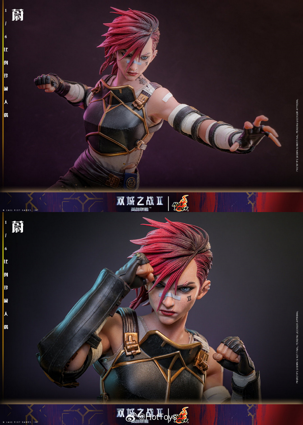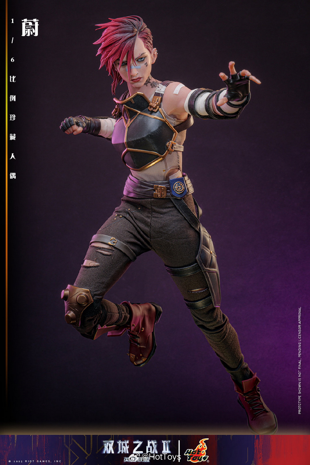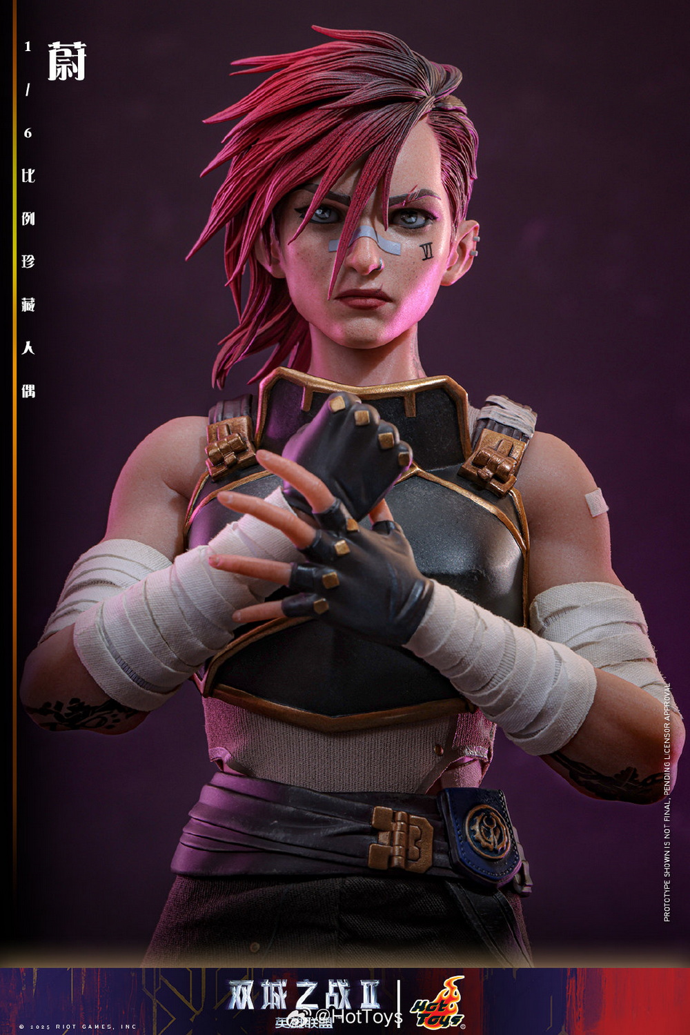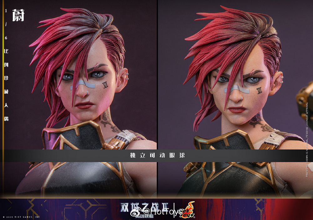 – The Hot Toys team has created a highly realistic character head sculpt with high aesthetic standards and exquisite sculpting and painting techniques, realistically depicting the facial contours, features, and accessories of Vi from the animated series. This includes details such as the iconic Vi tattoo under her left eye, her stylish broken eyebrows, mouth scars, nose ring, earrings, and more, portraying her as a brave guardian with the identity of an underground boxer, grown up in the crisis-ridden city of Zaun.