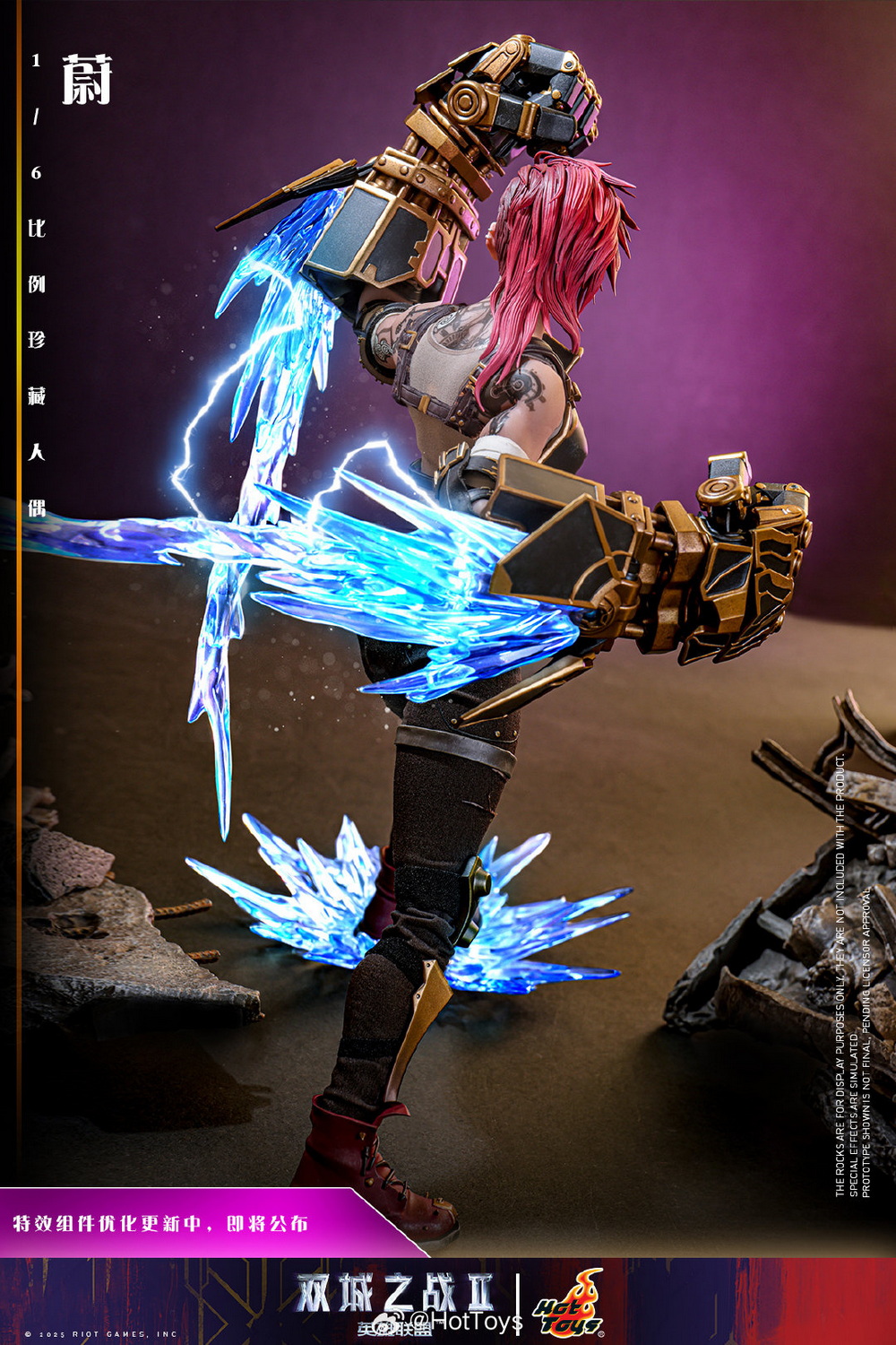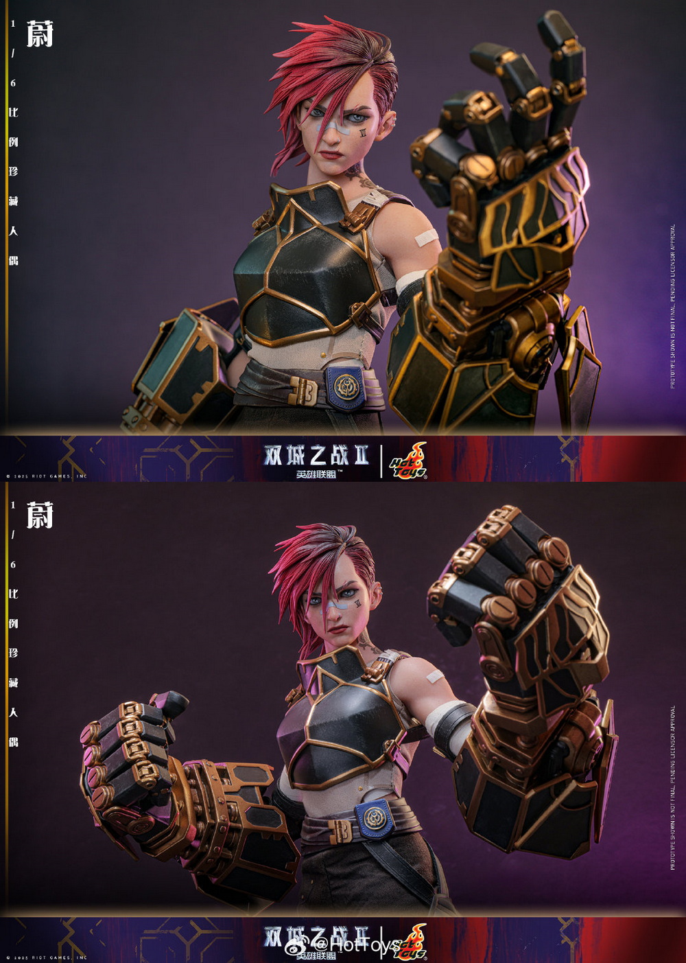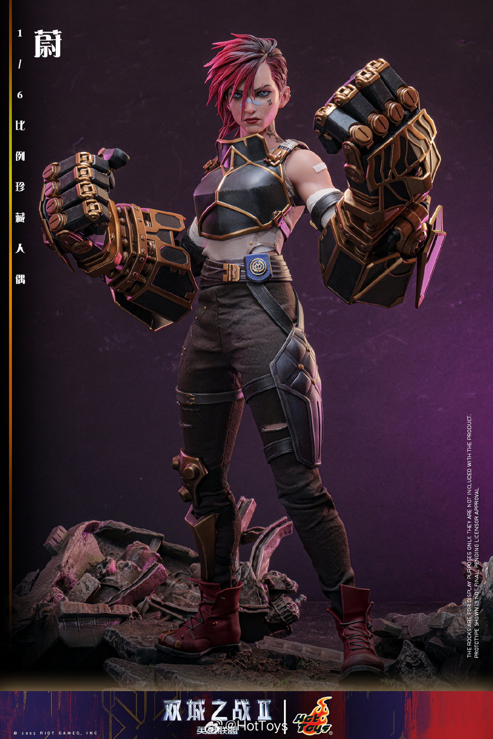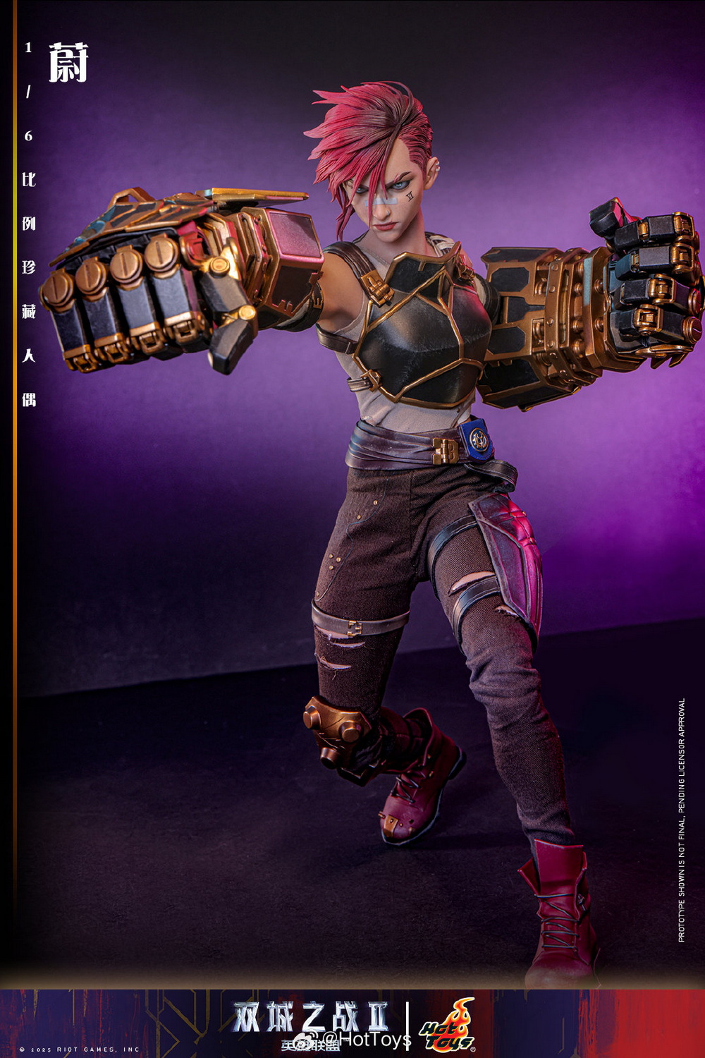 – The Hot Toys team has created a highly realistic character head sculpt with high aesthetic standards and exquisite sculpting and painting techniques, realistically depicting the facial contours, features, and accessories of Vi from the animated series. This includes details such as the iconic Vi tattoo under her left eye, her stylish broken eyebrows, mouth scars, nose ring, earrings, and more, portraying her as a brave guardian with the identity of an underground boxer, grown up in the crisis-ridden city of Zaun.