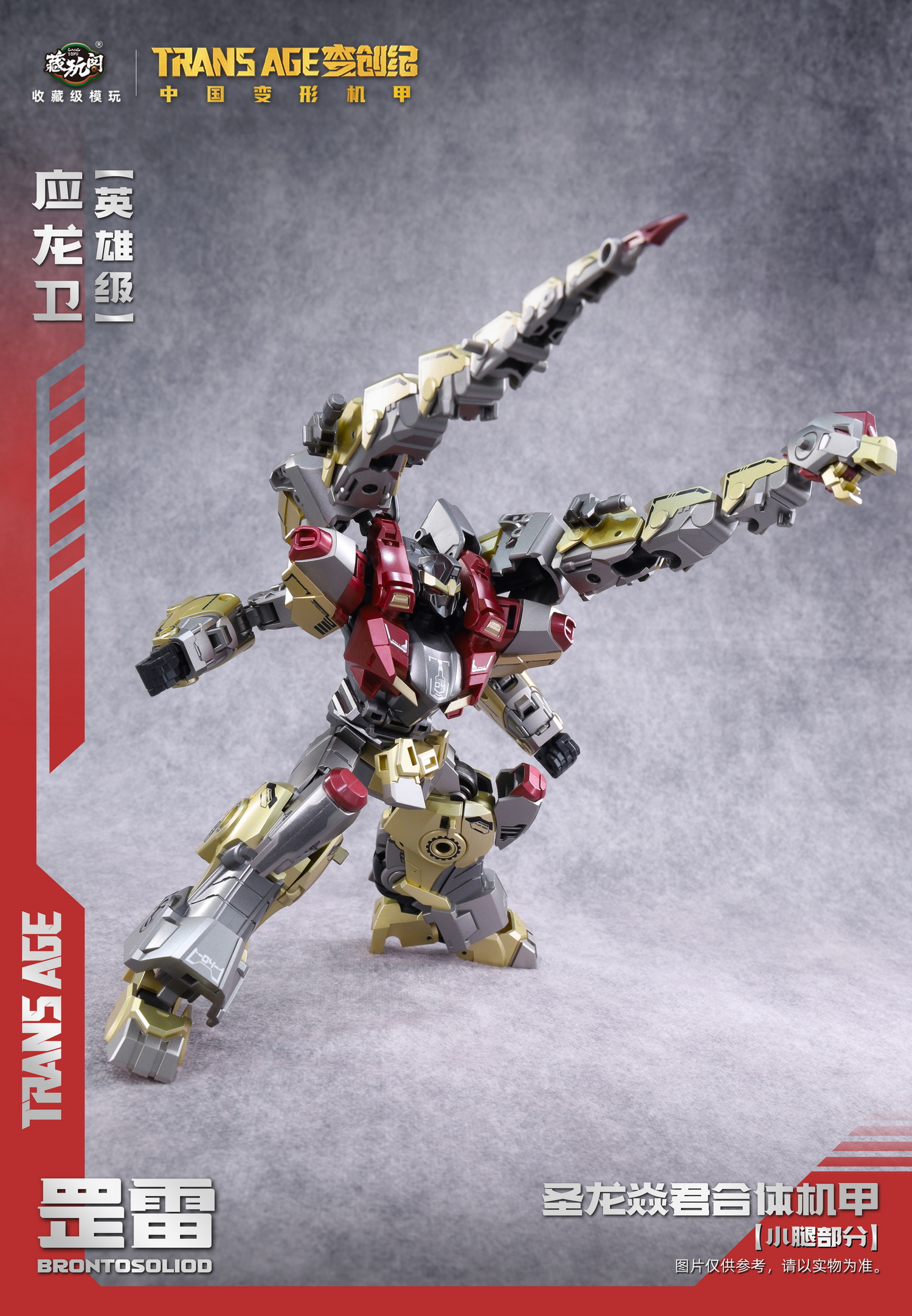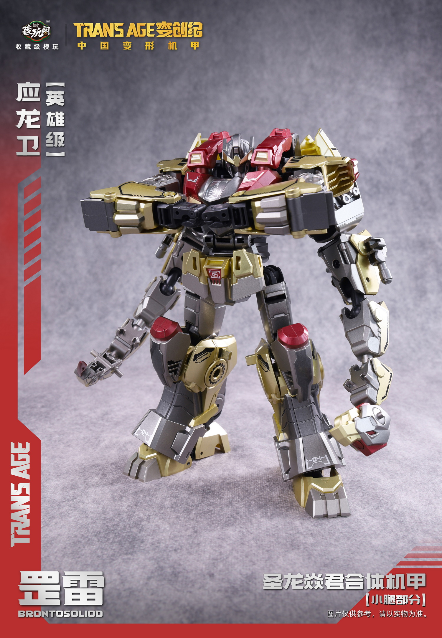 Cang-Toys TA-HYL001 TRANSAGE BRONTOSOLID Heroic Gray Model Debut~ Heavy hammer descends, fists subdue enemies! The versatile offensive powerhouse Gang Lei officially debuts in heroic scale; Silence is a habit for easy observation, Heavy strikes are Gang Lei’s task performance!