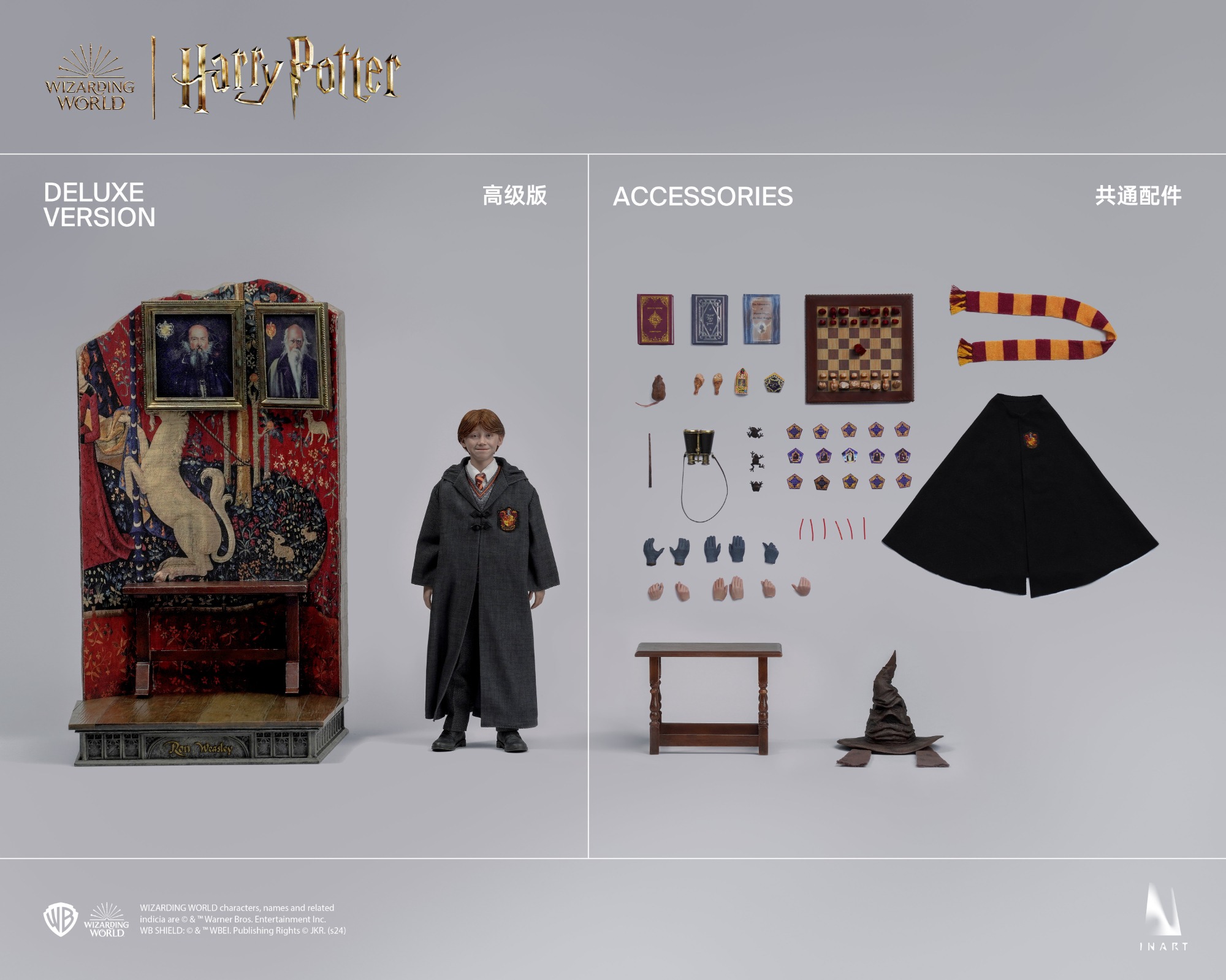 – 7 x sets Interchangeable Hand Including: – 1 x pair Relaxed Hands – 1 x pair Chicken Leg Holding Hands – 1 x Book Holding Right Hand – 1 x Wand Holding Right Hand – 1 x pair Relaxed Hands (Gloved) – 1 x pair Telescope Hands (Gloved) – 1 x Wand Holding Right Hand (Gloved)