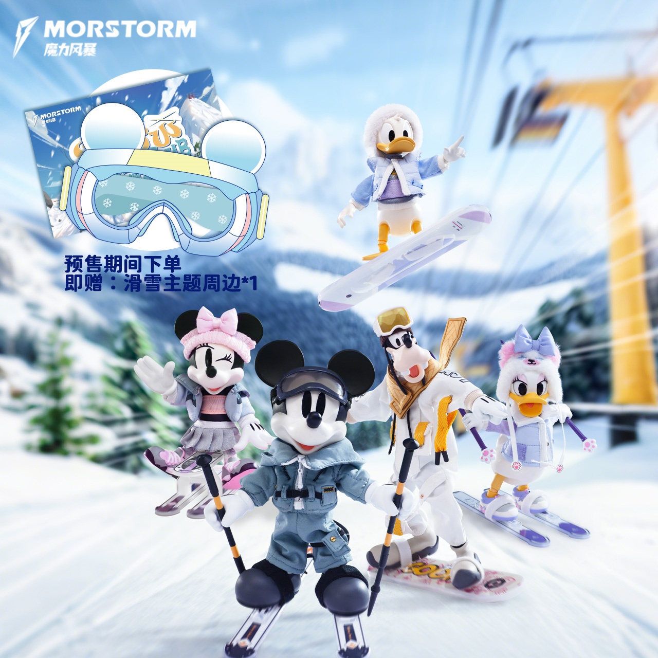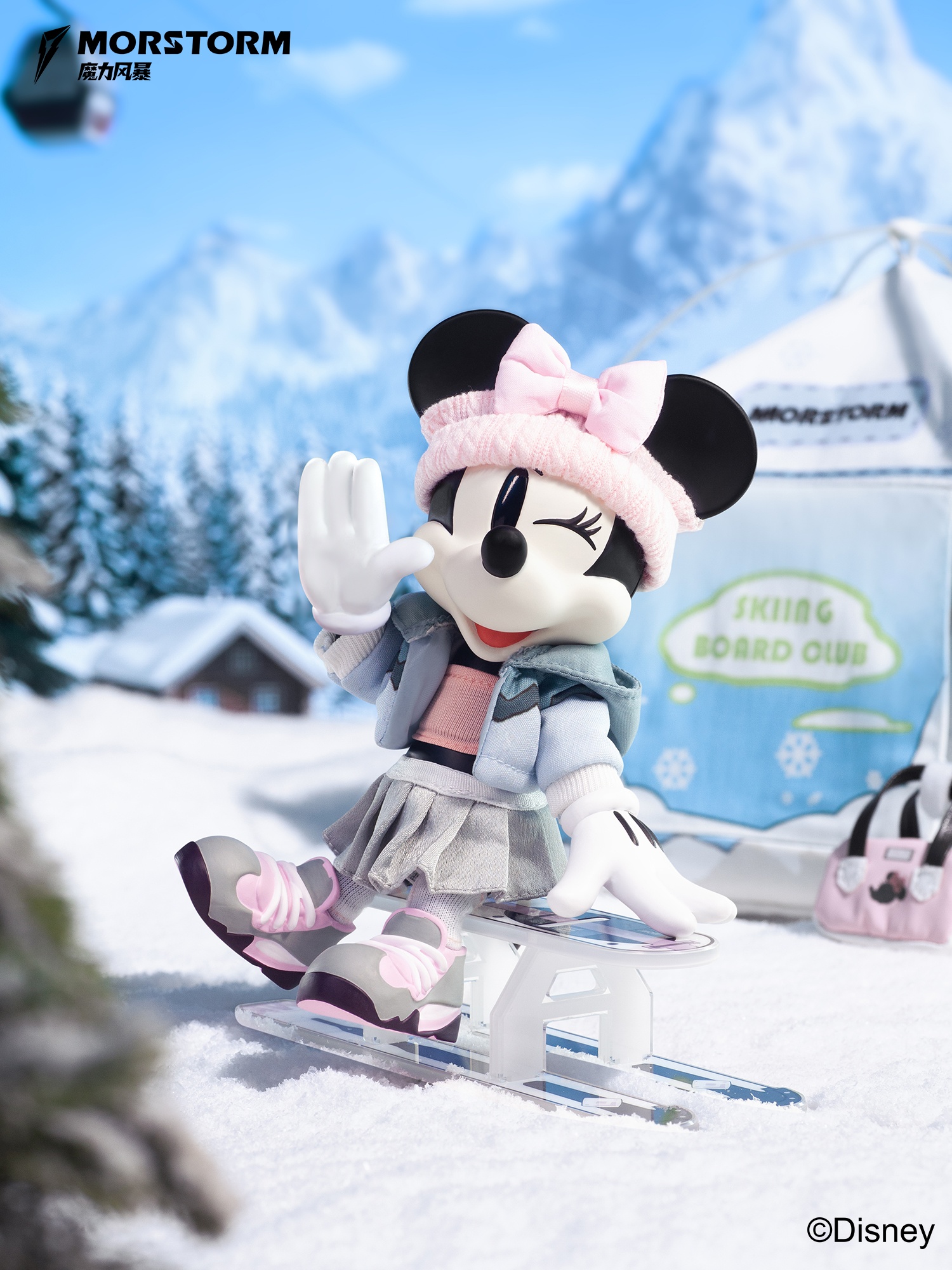 – Meet MORSTORM Disney SNOW BOARD CLUB Daisy, featuring an elegant base body and a charming ski suit. Accessories include skis, cat paw ski poles, a crossbody bag, and interchangeable hands and faces. Her happy and OK gestures add playful charm. Ideal for Disney enthusiasts and figure collectors.