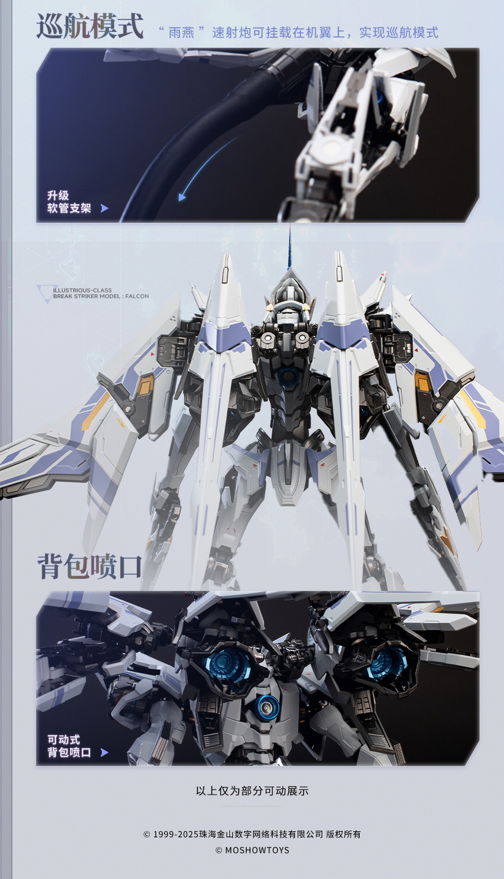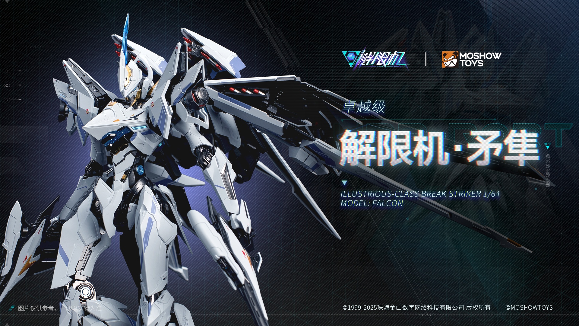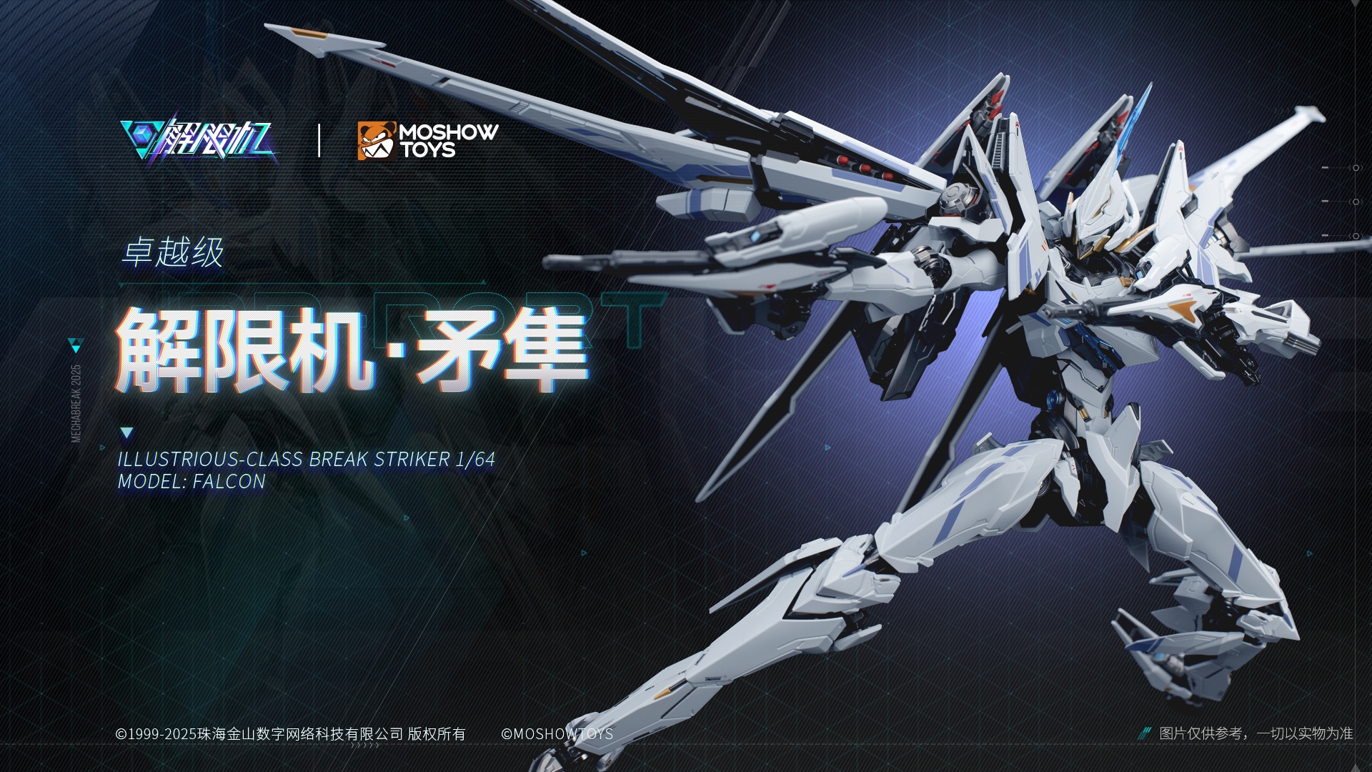 The Falcon is the reconnaissance variant of the Valvravn Striker from the Mecha BREAK universe—standing roughly 23 cm tall, with a striking blend of plastic and alloy die-cast parts for added heft . Its elegant transformation and jet-inspired silhouette are standout features