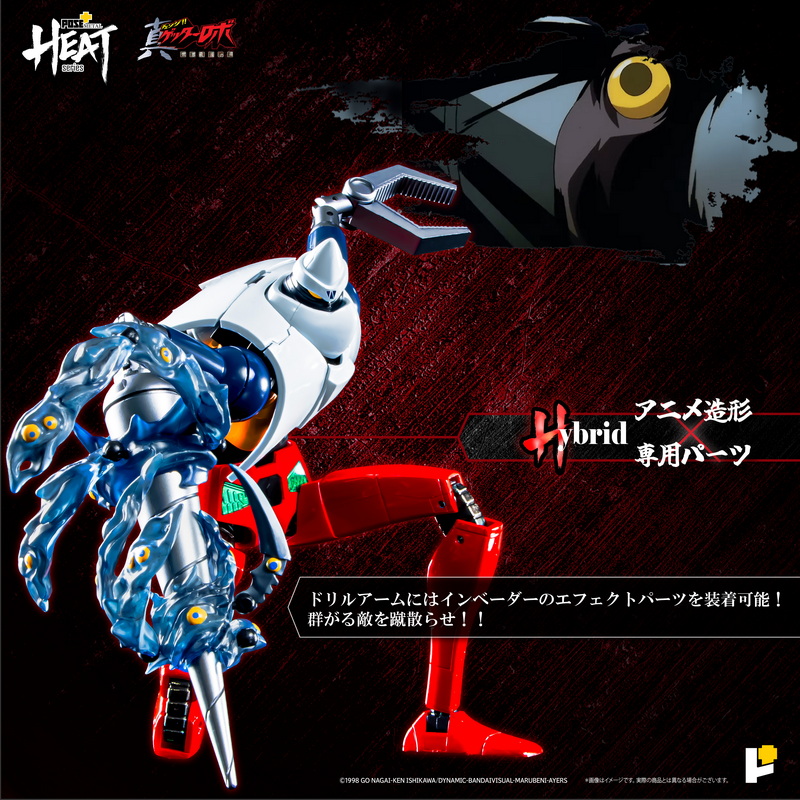 – The POSE+ METAL HEAT series presents Getter 1 (Getter Robo Armageddon ver.), featuring premium metallic finishes and poseable joints for dynamic displays. Comes with interchangeable parts and detailed accessories, including weapons and display stands. The cockpit opens to reveal intricate interior details. Perfectly captures the iconic robot’s fierce battle-ready stance.