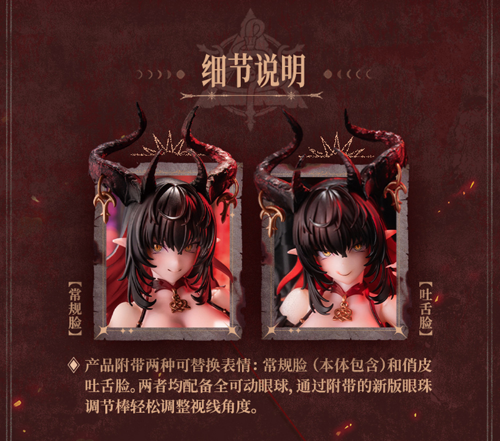 – In addition to the standard high heels, a pair of replacement demon hooves are specially equipped to showcase the unique charm of the succubus.
