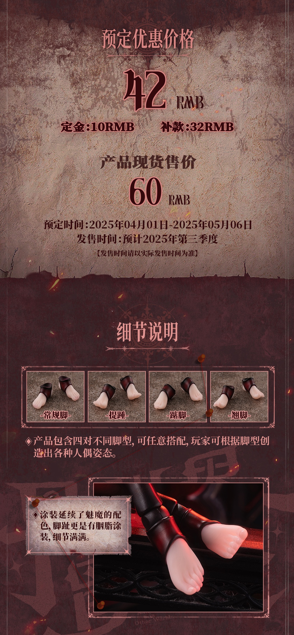 – The product includes 4 pairs of interchangeable hands. The slender nail design is more in line with the succubus setting, showcasing unparalleled sophistication.