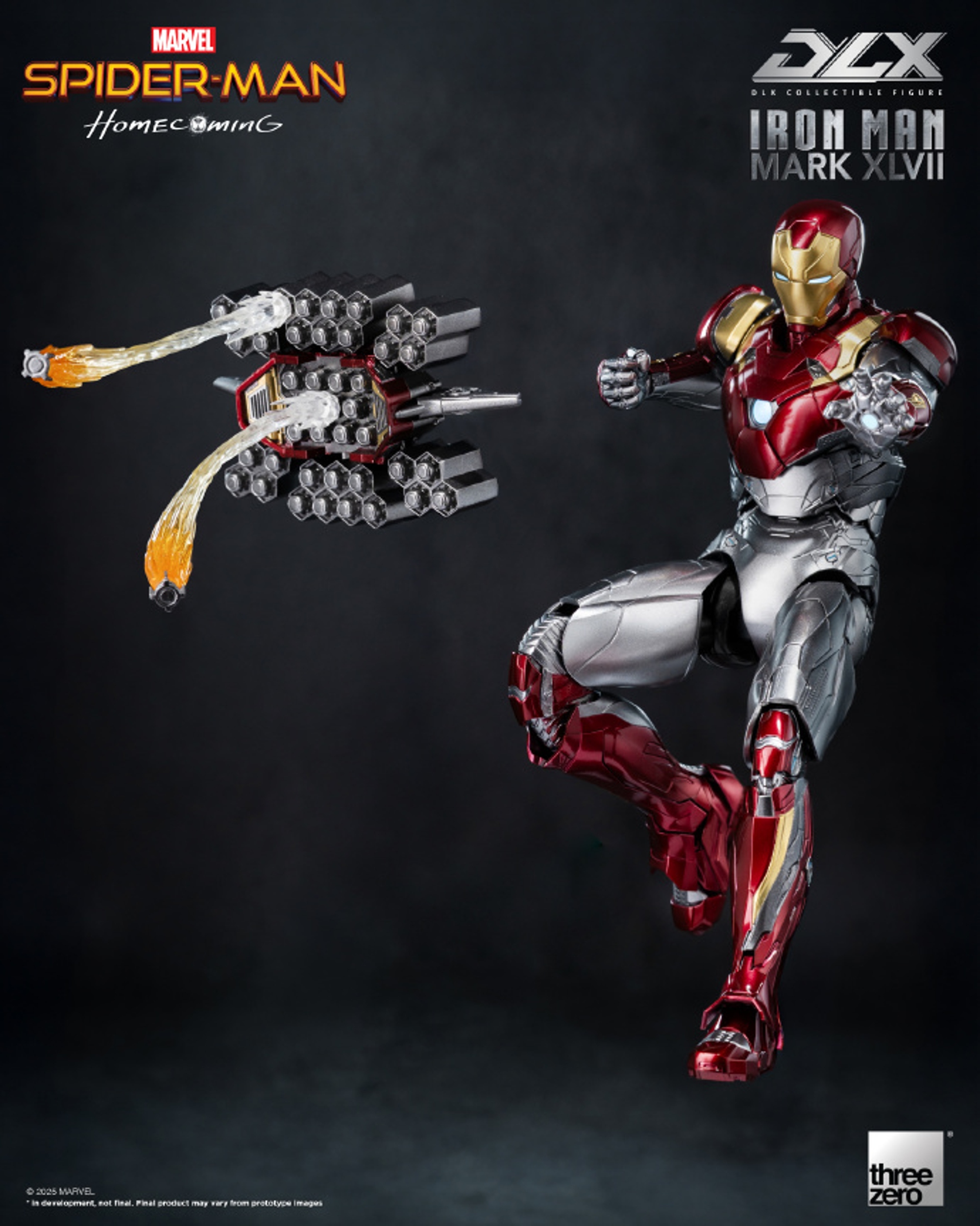 – Threezero proudly presents the latest addition to the Marvel DLX series – the DLX Iron Man Mark 47. The armour features a two-tone metallic silver finish, complemented by the iconic red and gold colour scheme, faithfully recreating the cinematic appearance. The set includes an interchangeable open helmet and a drone. The drone features miniature thrusters and corresponding effect accessories, alongside multiple extension components for customisation, enhancing the Mark 47’s playability.