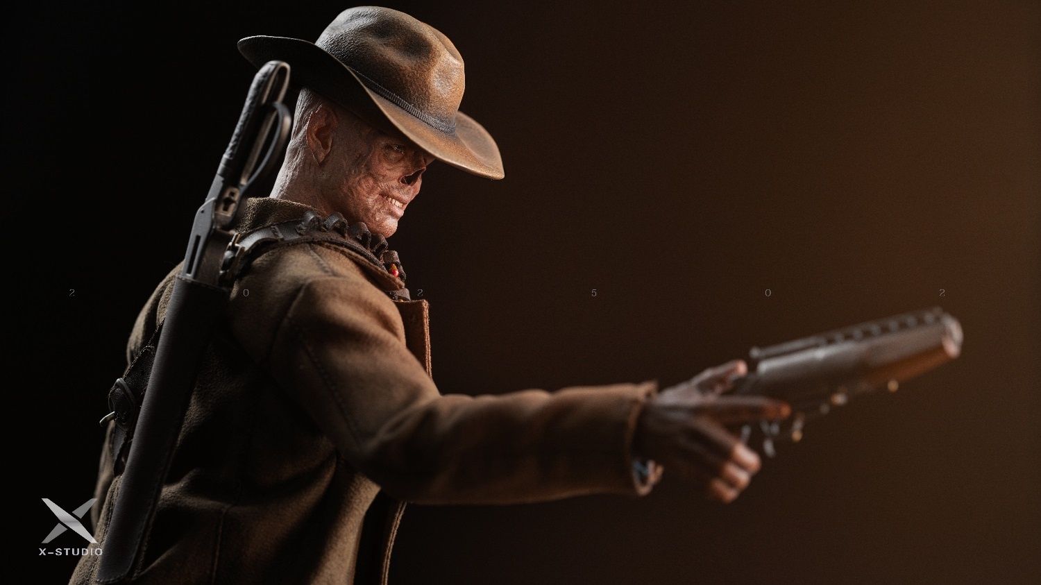 – The X-STUDIO X-S004 1/6 Fallout Cooper Howard action figure. Set in a post-apocalyptic world, Cooper Howard is a survivor from Vault 111. Standing at 33cm, this highly articulated collectible features two head sculpts, a variety of clothing items including a coat, vest, and pants, and numerous accessories like a revolver shotgun, lever-action rifle, and machete. Additional details include a leather backpack, Vault Boy figurine, and even Dogmeat as a companion. Ideal for Fallout fans and collectors who appreciate intricate detail and storytelling.